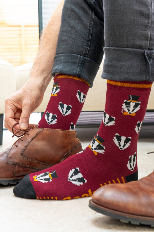 Men's Bamboo Socks - Burgundy/Black, Dapper Badger