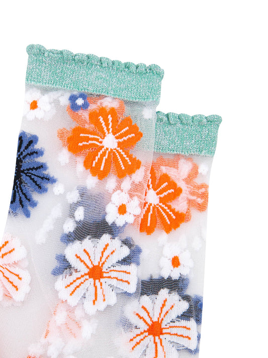 Bold Floral Combed Cotton Sheer Pop Socks in Sage Green