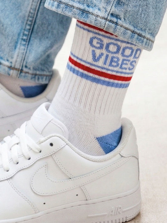 Good Vibes Organic Cotton Sports Socks in White