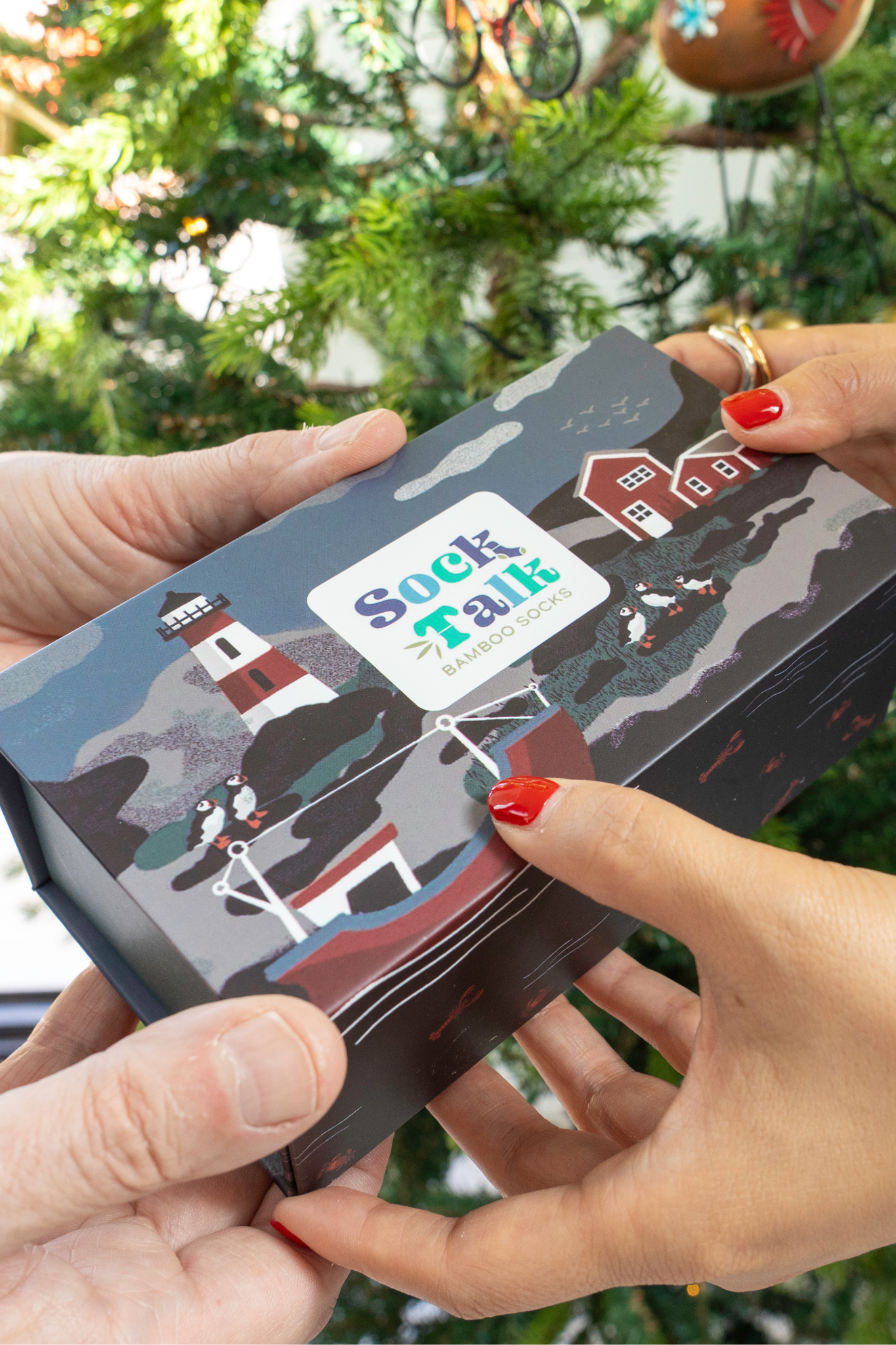 Men's Bamboo Crew Socks Festive Gift Set - Navy Blue/Red, Sealife
