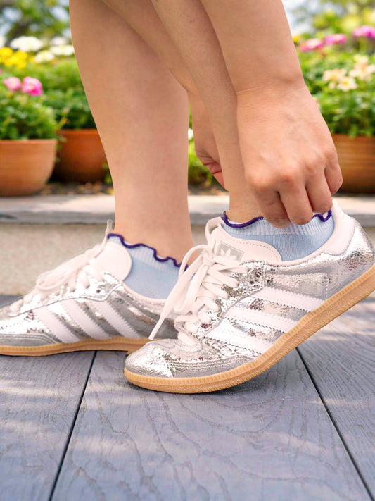 Frilly Trim Bamboo Trainer Socks in Blue/Navy
