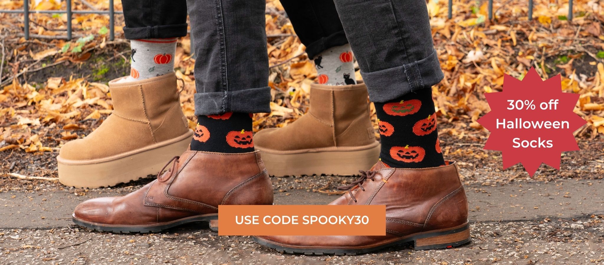 Our Halloween socks are more treat than trick - soft, cozy, and frightfully fun. Whether you’re rocking ghastly patterns, sparkling glitter, or pumpkins with personality, these socks add the perfect pop of spooky spirit to your look. Crafted for comfort with a hauntingly good fit, they’re ideal for everything from pumpkin carving to scary movie marathons. Slip them on and bring Halloween to your feet - no costume required. Browse all Halloween socks below.