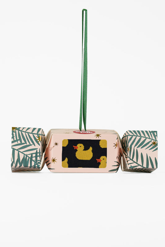 Men's Bamboo Crew Socks Christmas Cracker Gift Box - Black/Yellow, Rubber Ducks