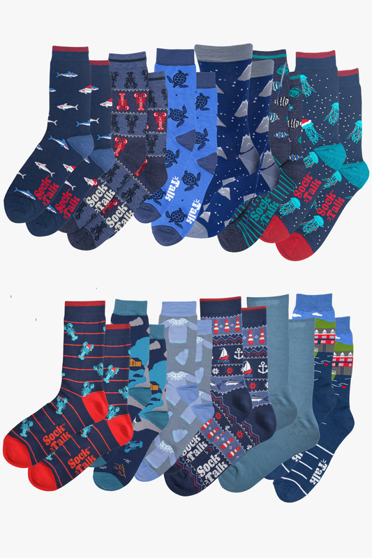 Men's Bamboo Crew Socks Advent Calendar - Navy Blue, Nautical