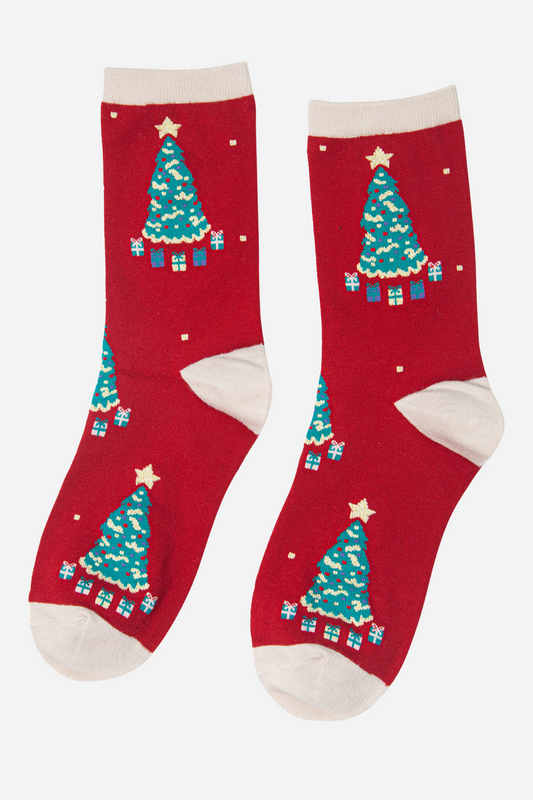 Sock Trio Gift Wrap - Brown, Christmas Tree