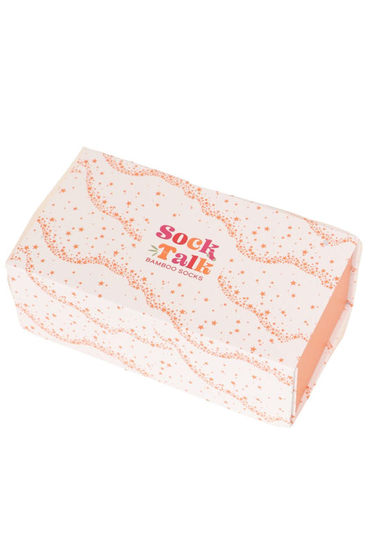 Sock Trio Gift Wrap - Cream/Orange, Star Wave