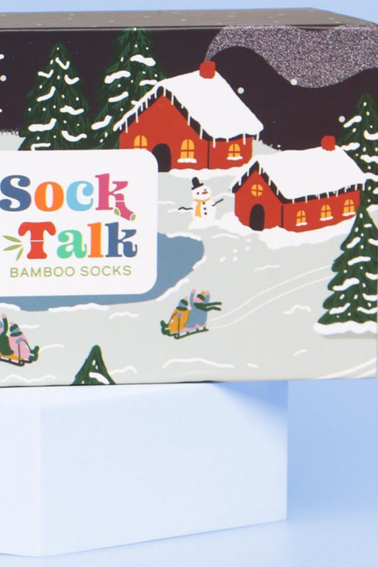 Sock Trio Gift Wrap - Blue, Winter Scene