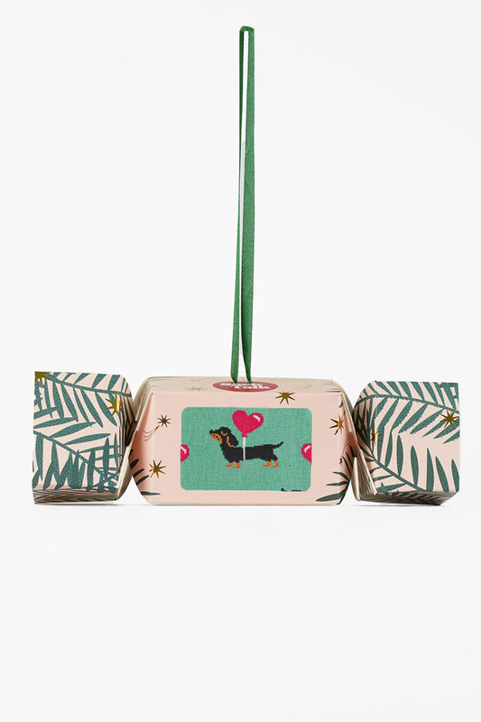 Women's Bamboo Ankle Socks Christmas Cracker Gift Box - Mint/Pink, Sausage Dog With Love Heart Balloon