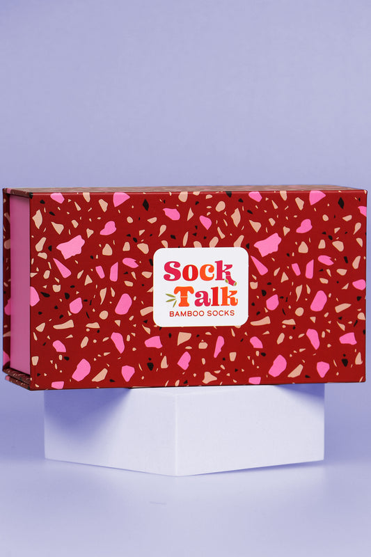 Women's Bamboo Ankle Socks Christmas Cracker Gift Box - Raspberry/Light Pink, Baking