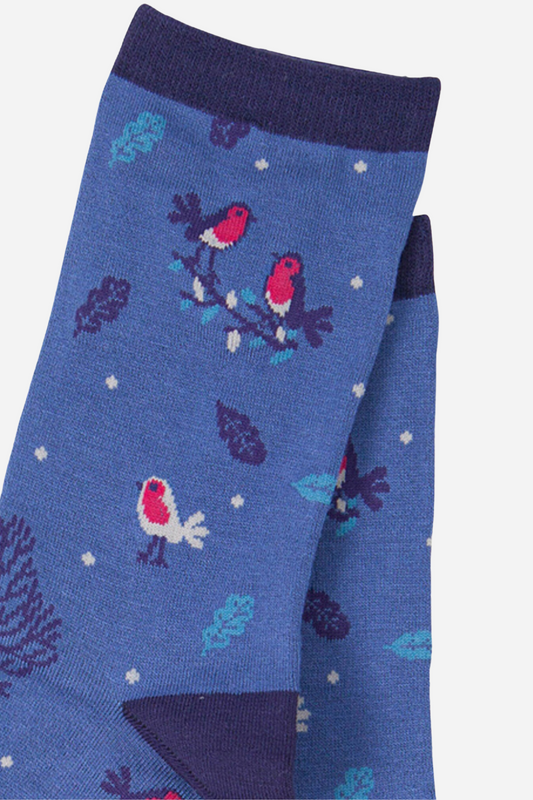 Women's Bamboo Novelty Socks Robin Birds Trees Blue