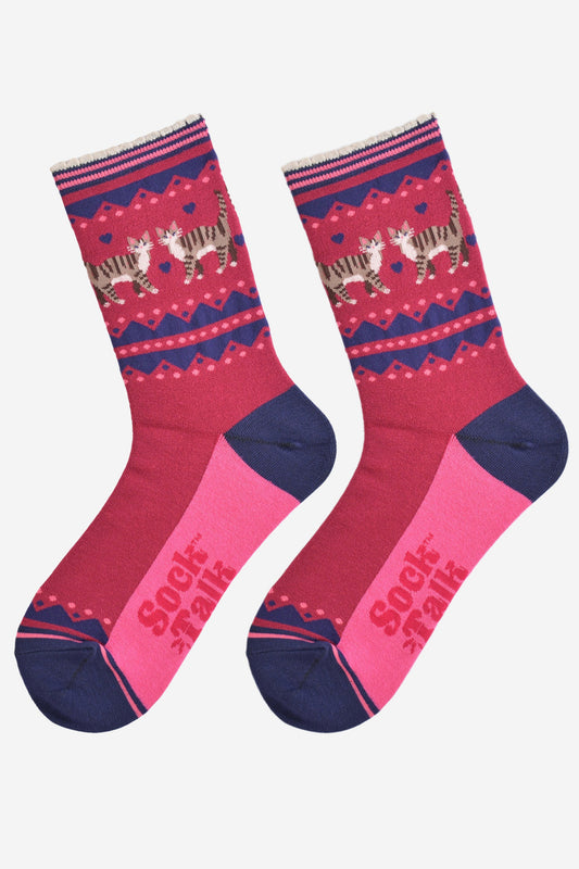 Women's Bamboo Socks - Berry/Navy Blue, Cat Duo