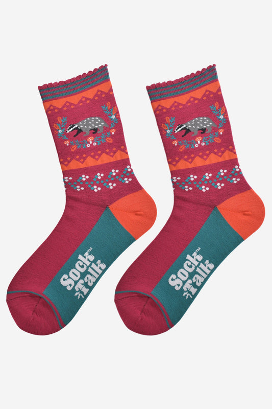 Women's Bamboo Socks - Berry/Orange, Badger Wreath