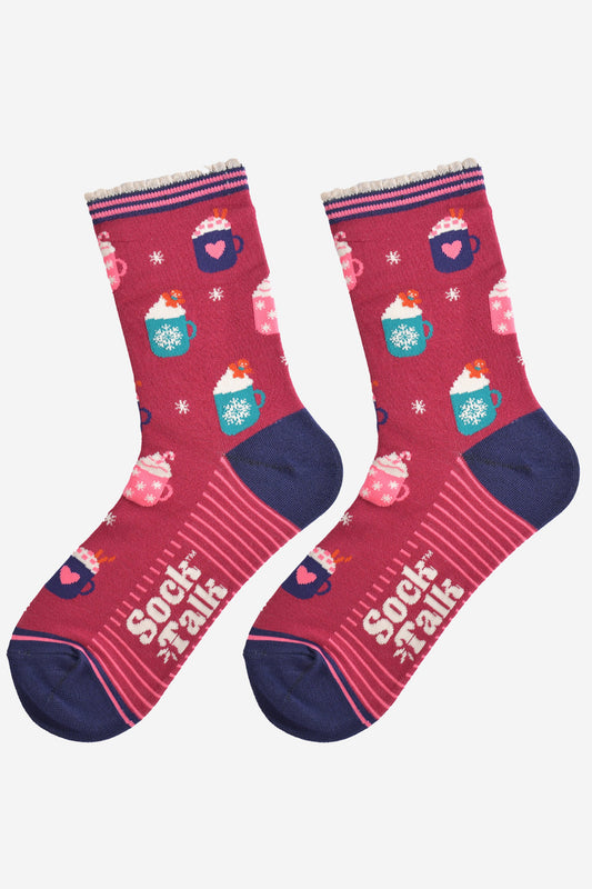 Women's Bamboo Socks - Berry/Navy Blue, Hot Drinks