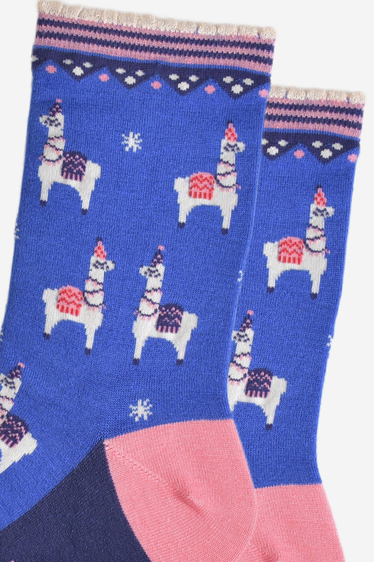 Women's Bamboo Socks - Blue/Pink, Party Llamas