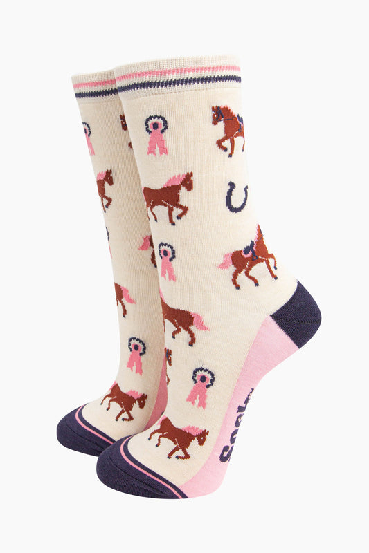 Women's Bamboo Socks - Cream, Horse Riding