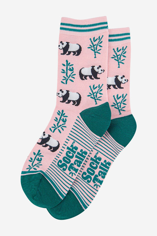 Women's Bamboo Socks - Light Pink/Green, Panda