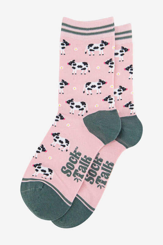 Women's Bamboo Socks - Light Pink/Green, Spring Cow