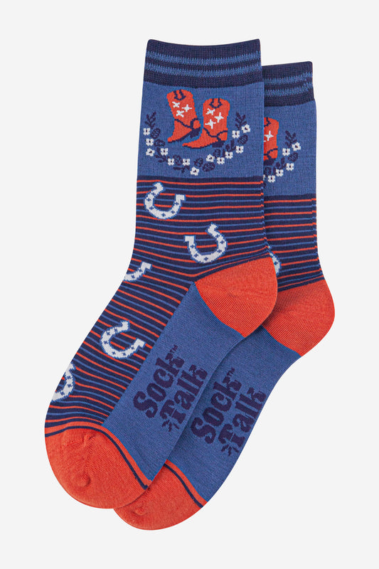 Women's Bamboo Socks - Navy Blue/Denim Blue, Cowboy Boots and Hat
