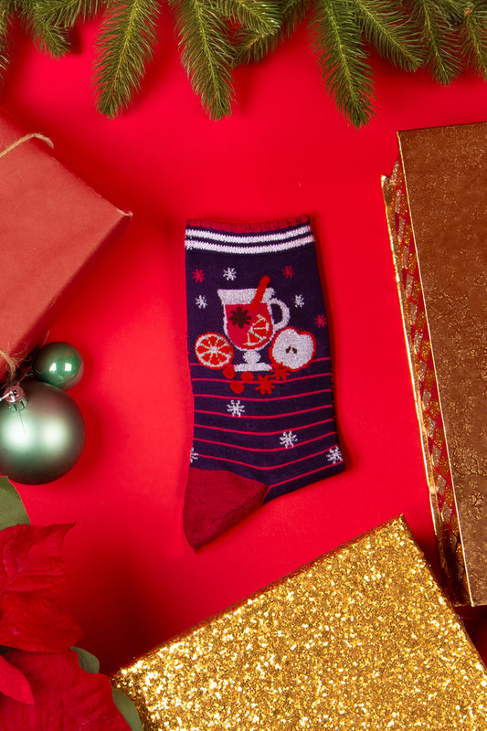 Women's Bamboo Socks - Navy Blue/Burgundy, Mulled Wine
