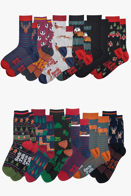 Men's Bamboo Crew Socks Advent Calendar - Navy Blue, Woodland Animals