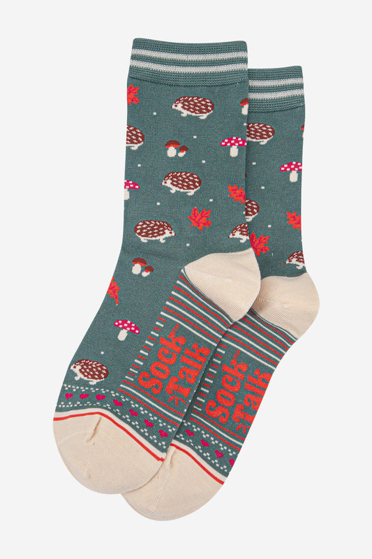 Women's Bamboo Socks - Sage Green/Cream, Hedgehog Toadstool
