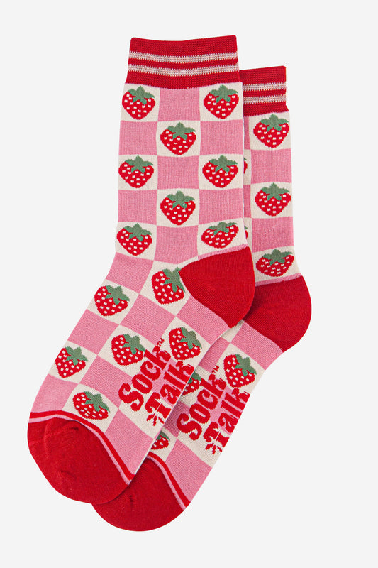 Women's Bamboo Socks - Pink/Red, Checked Strawberry