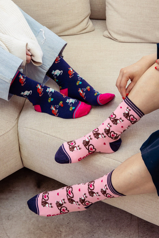 Women's Bamboo Socks - Pink, Cats Love Heart Tails