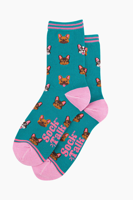 Women's Bamboo Socks - Teal, Frenchie Bulldogs