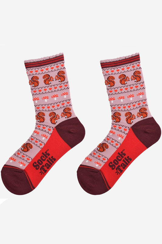 Women's Bamboo Socks - Pink/Burgundy, Squirrel Fair Isle