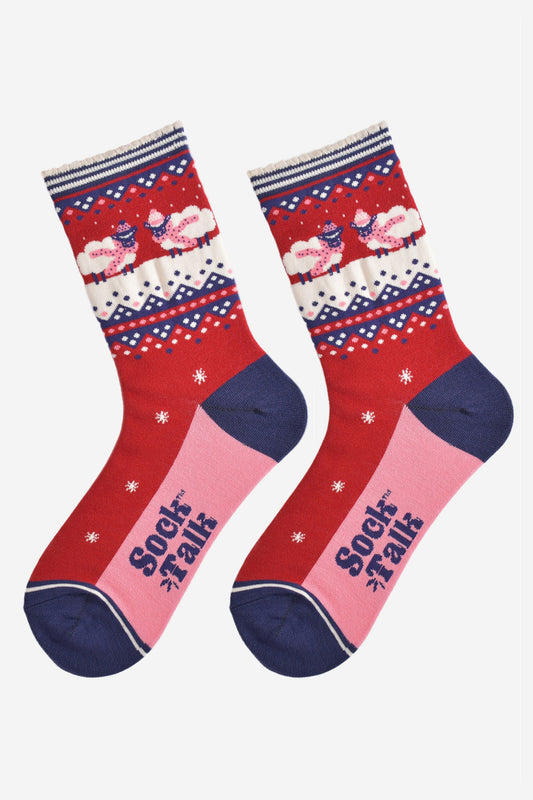 Women's Bamboo Socks - Red/Navy Blue, Sheep Fair Isle