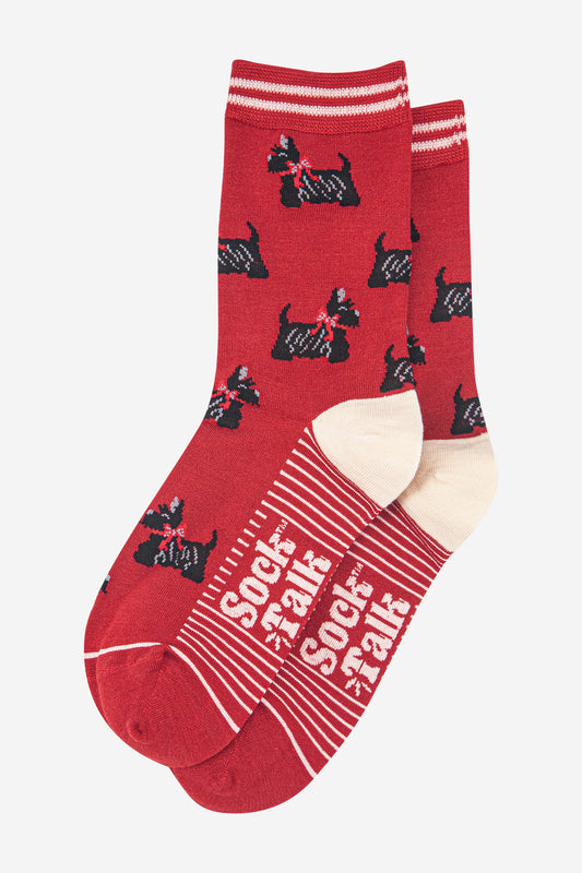 Women's Bamboo Socks - Red/Cream, Scottish Terriers