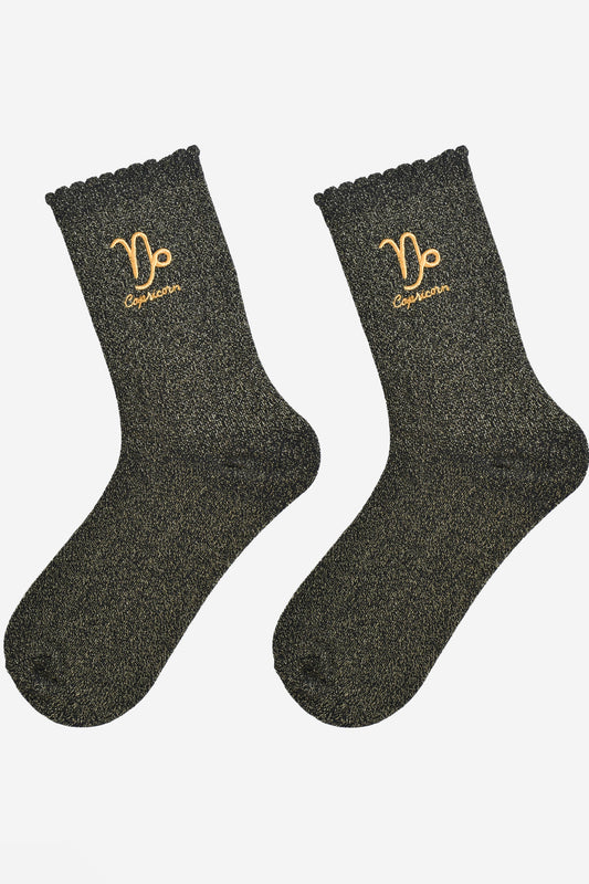 Women's Glitter Socks - Black/Gold, Zodiac Capricorn