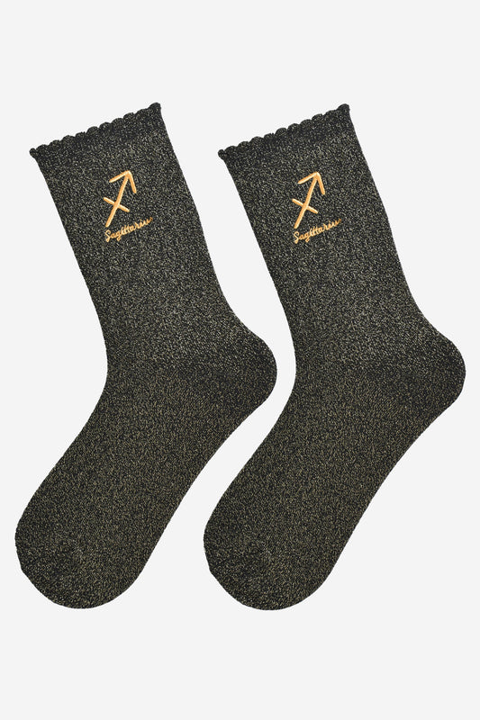Women's Glitter Socks - Black/Gold, Zodiac Sagittarius