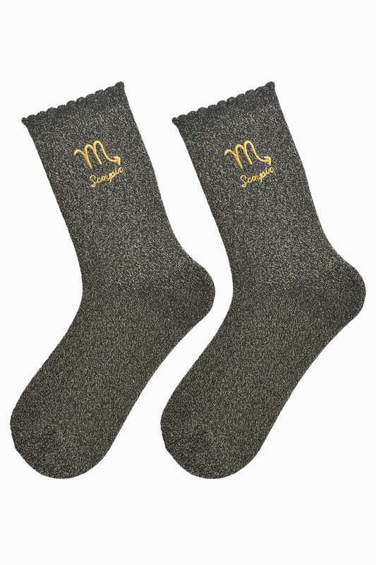 Women's Glitter Socks - Black/Gold, Zodiac Scorpio