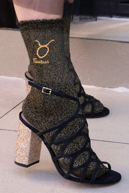 Women's Glitter Socks - Black/Gold, Zodiac Taurus