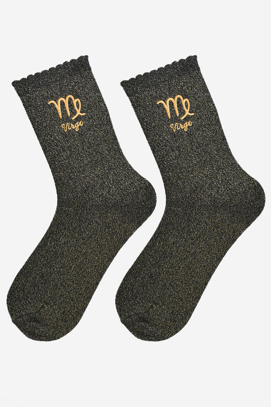 Women's Glitter Socks - Black/Gold, Zodiac Virgo