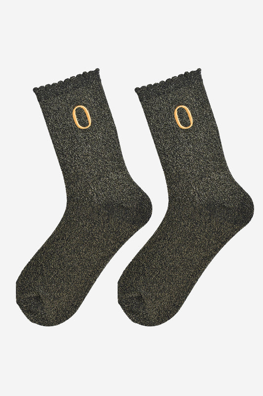 Women's Glitter Socks - Black/Gold, Initial "O"
