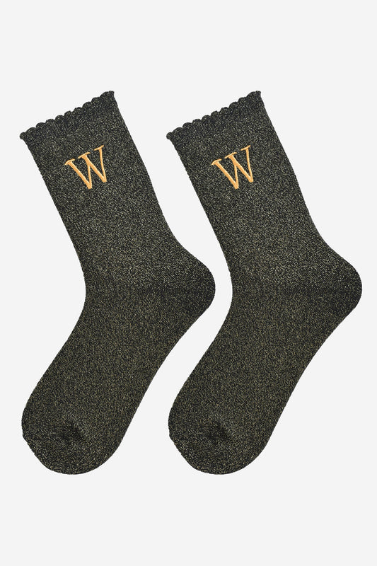 Women's Glitter Socks - Black/Gold, Initial "W"