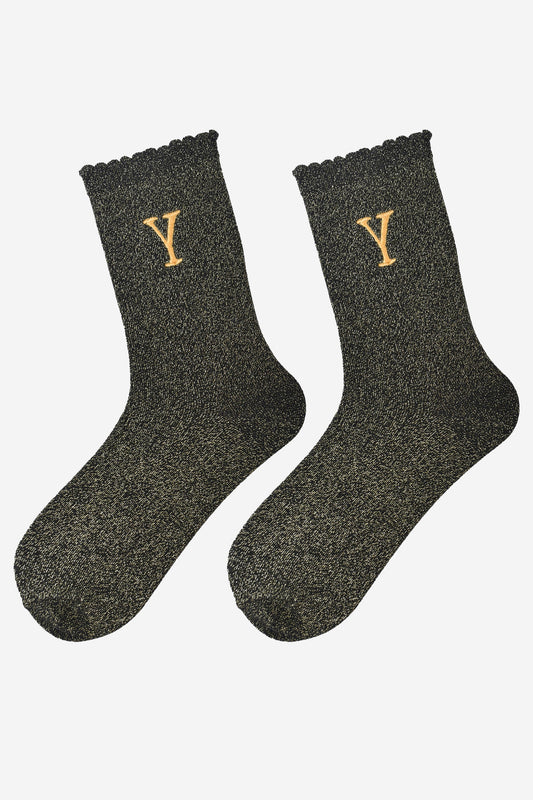 Women's Glitter Socks - Black/Gold, Initial "Y"