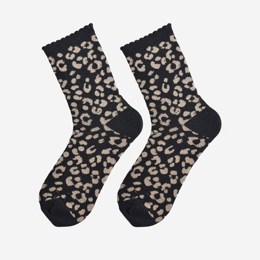Women's Glitter Socks - Black/Lime, Large Polka Dot