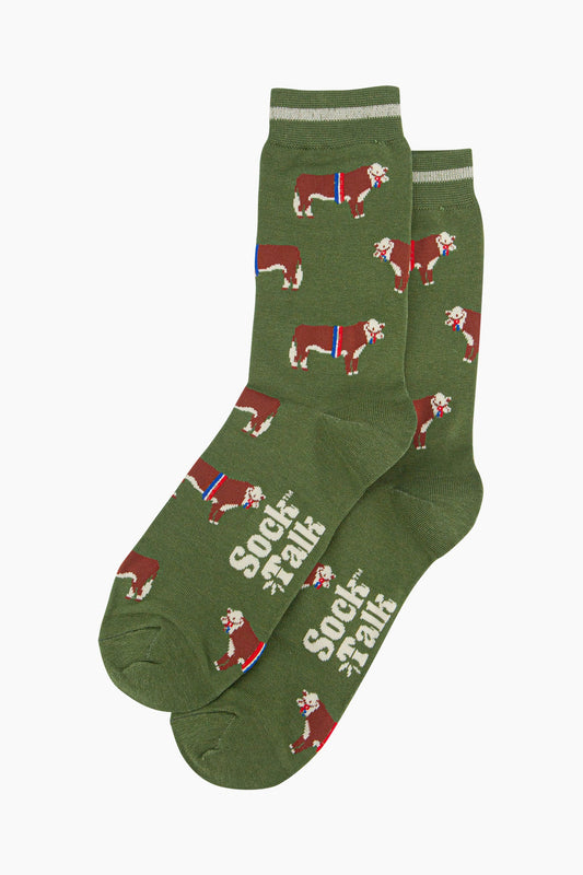 Men's Bamboo Socks - Green, Prize Hereford Bull