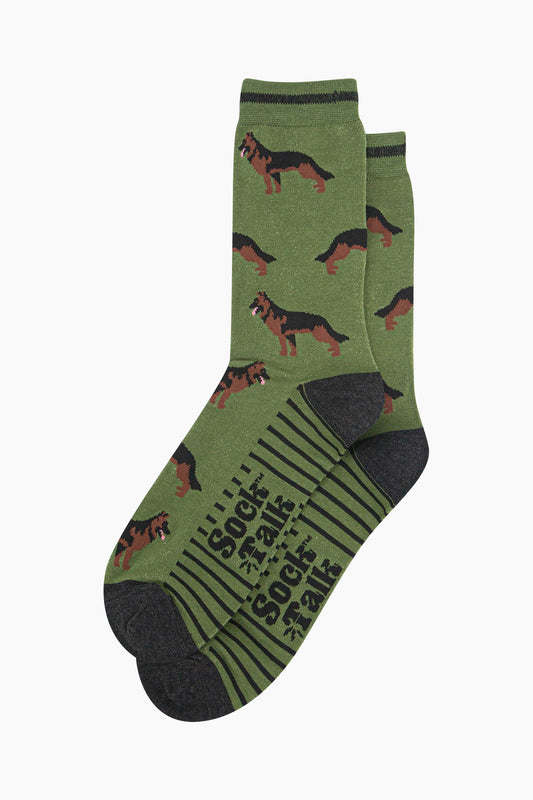 Men's Bamboo Socks - Green, Alsatian German Shepherd