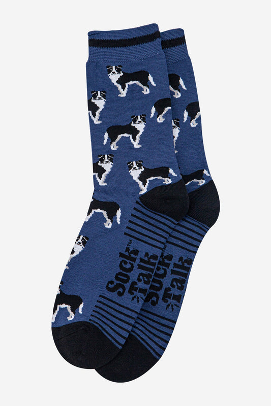 Men's Bamboo Socks - Denim Blue/Black, Border Collie