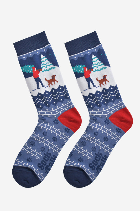 Men's Bamboo Socks - Blue, Christmas Man and His Dog