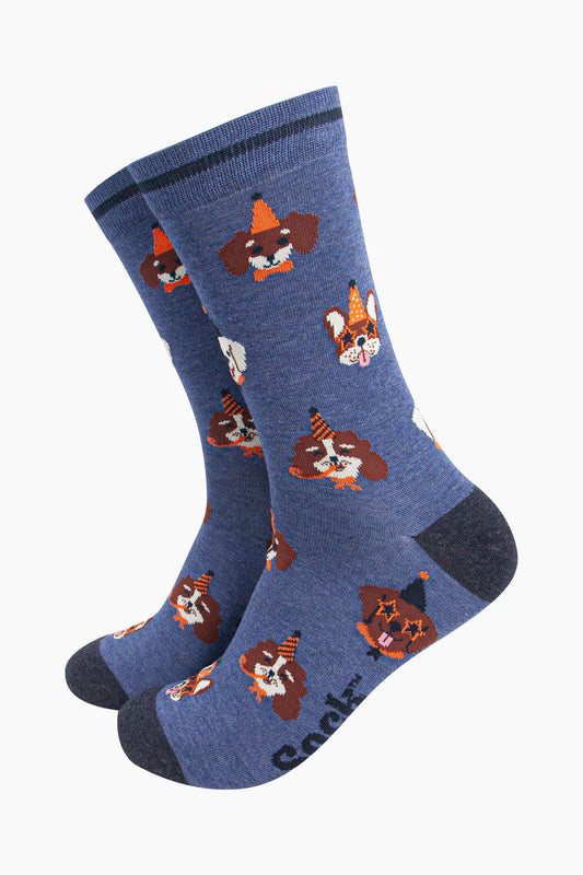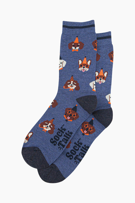 Men's Bamboo Socks - Denim Blue, Party Dogs