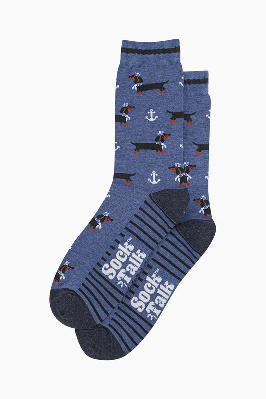 Men's Bamboo Socks - Denim Blue, Sausage Dog Sailor Anchor