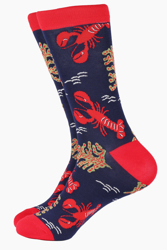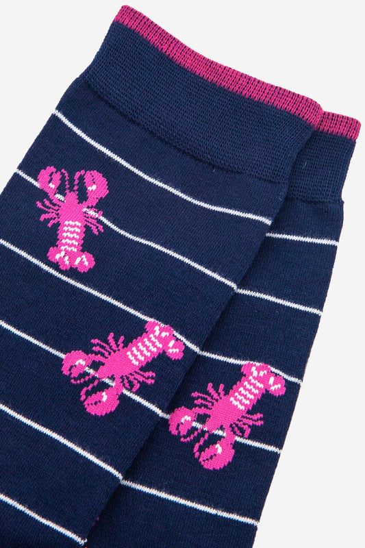 Men's Lobster Bamboo Socks Stripe in Navy Blue