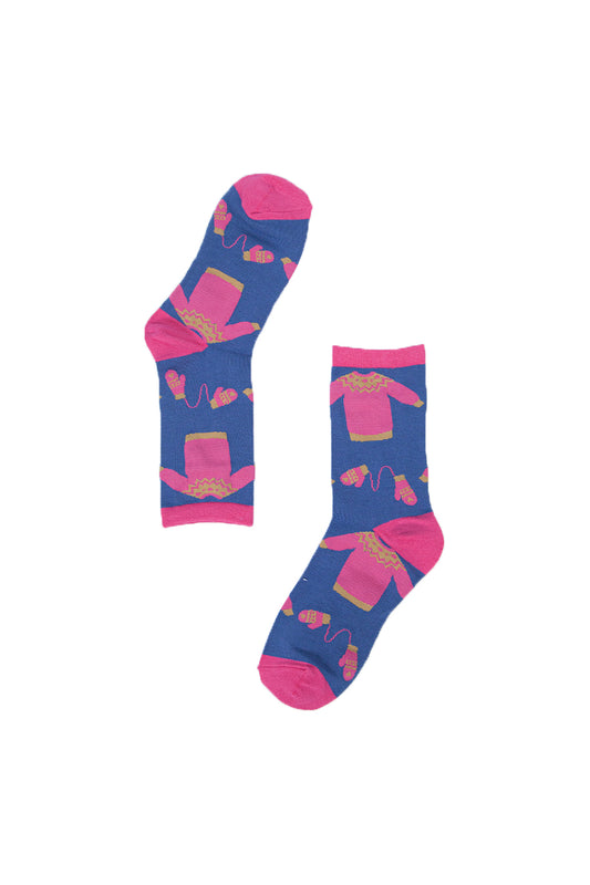 Womens Bamboo Christmas Socks Xmas Jumper Novelty Ankle Socks Blue Pink