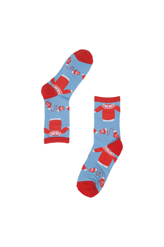 Womens Bamboo Christmas Socks Xmas Jumper Novelty Ankle Socks Blue Red