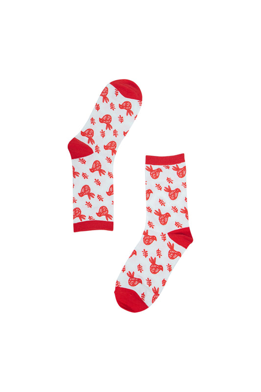 Womens Bamboo Socks Scandi Bird Christmas Ankle Socks White Red